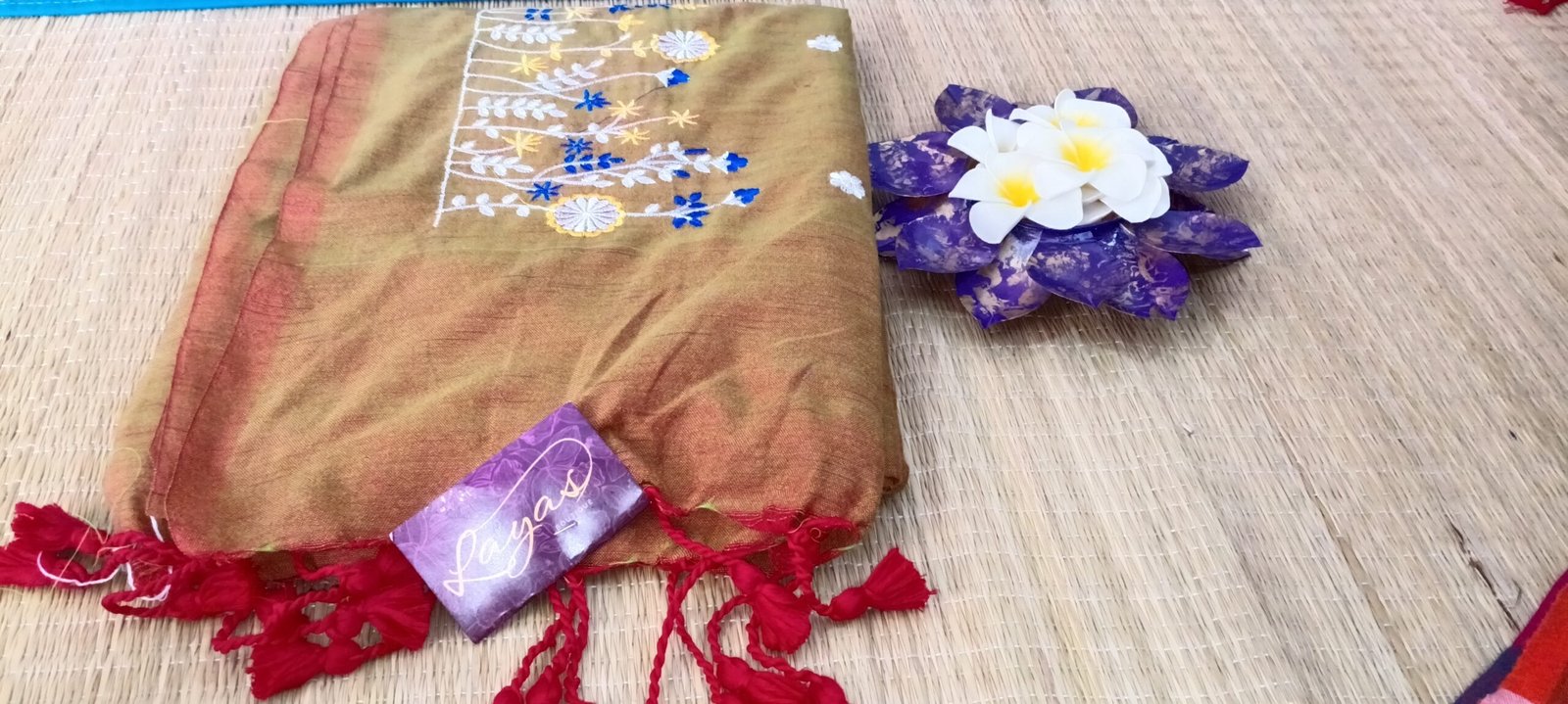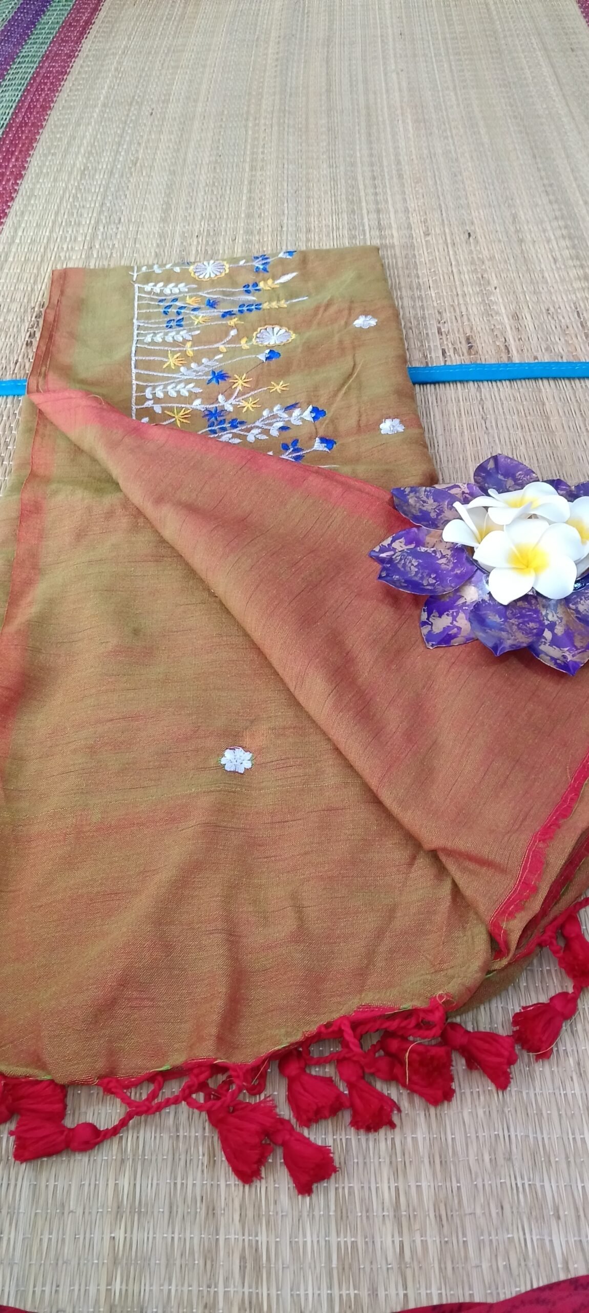 Khadhi cotton with floral embroidery at the bottom