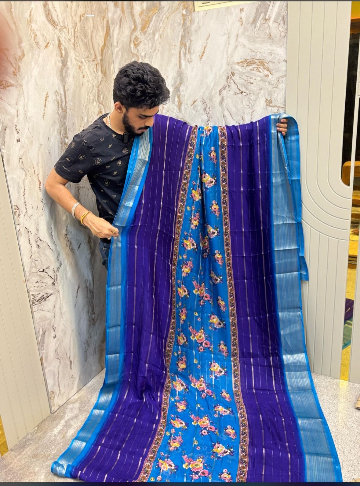 🦚🦚 Grand jari pallu and contrast blouse 6.30 mtrs🦚🦚 🧵🧵 Very Soft and smooth cotton ,saree all over thread puttas🧵🧵