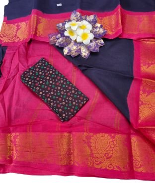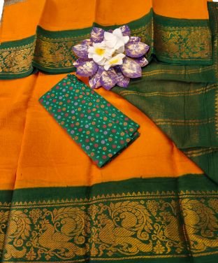 60 count plain sungidi saree with contrast border/ individual blouse pice