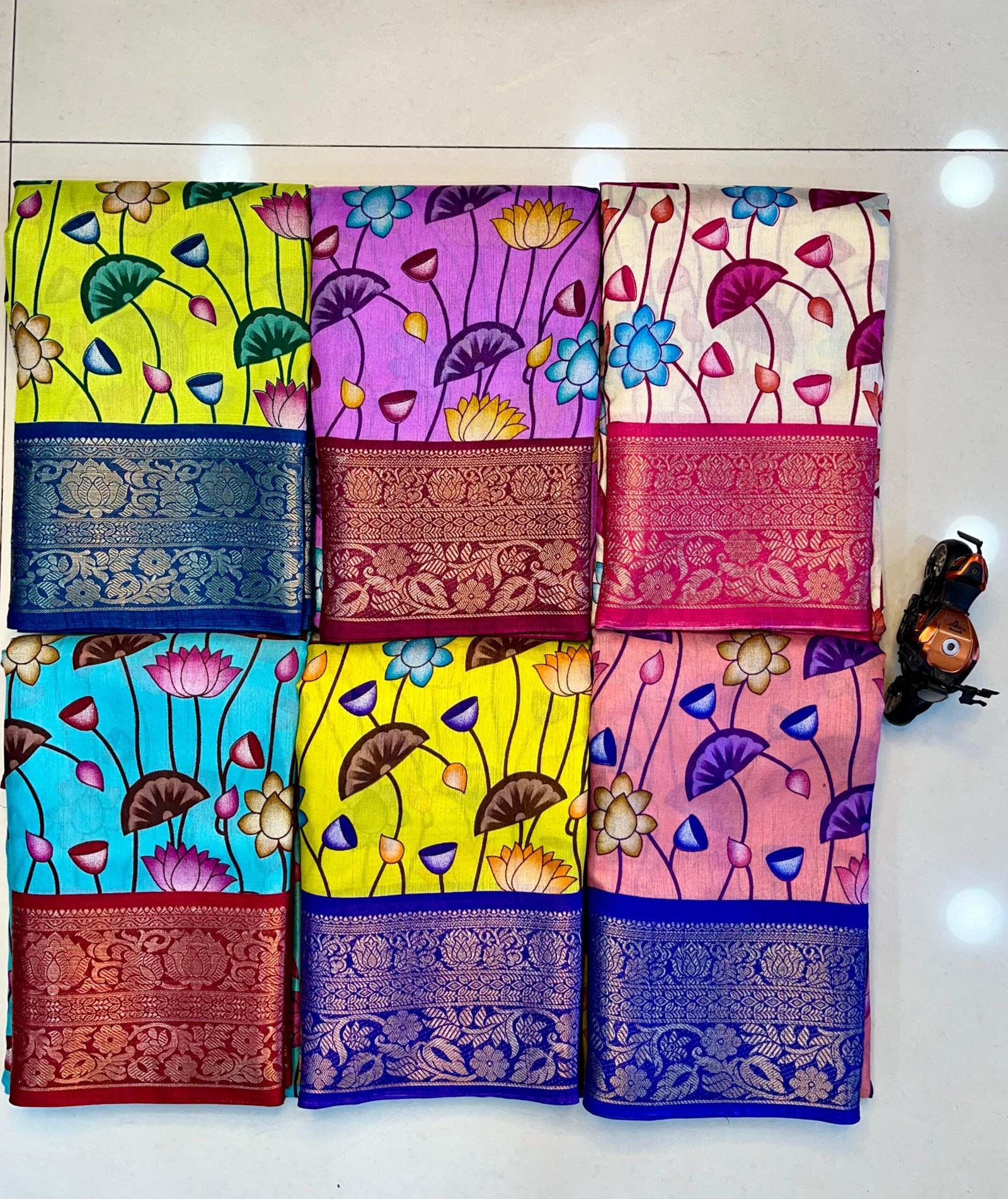 SAREES FABRIC.:- Saree9 Georgette chiffon with flower print with foil work